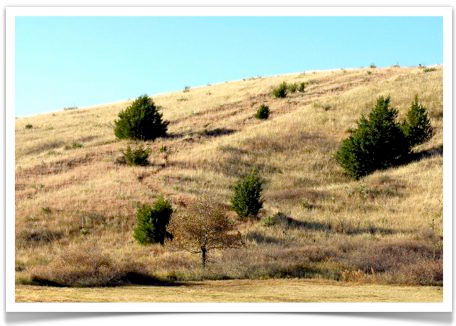 ABOVE: The hill at Ash Hollow. In this modern-day photo, you can still see the ruts left by the covered wagons. (Starting at the upper right and moving to the lower left)