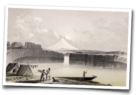 At The Dalles, the Columbia River rumbled through a narrow chasm. It was here that Jason Lee set up a Methodist mission in 1838. History does not tell us how many were converted at Lee's tiny outpost, but The Dalles did become a critical stop for the emigrants. That's because it was here that the trail ruts came to a complete stop--blocked by the Cascade Mountains. Unfortunately, the Willamette Valley--the emigrant's destination--was still 100 miles further on. In the Trail’s first years, there was only one solution--float the wagons down the Columbia River.