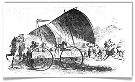 Then there was the wind wagon, a cross between a sailboat and a wagon. Because it can be very windy in the West, it seemed like a good idea on paper. A prototype was built, and for a brief moment it barreled across the plains at the advertised 15 miles per hour. Then it went out of control and crashed. The inventor, "Wind-Wagon Thomas," kept trying for years, but never succeeded.
